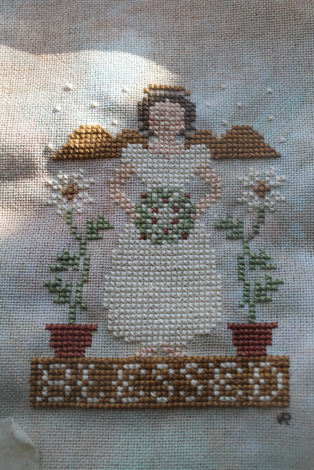 Tänään aloittelin sitten Little House needleworksin enkelimallia Blessed heidän joulukoriste sarjasta 2012.
